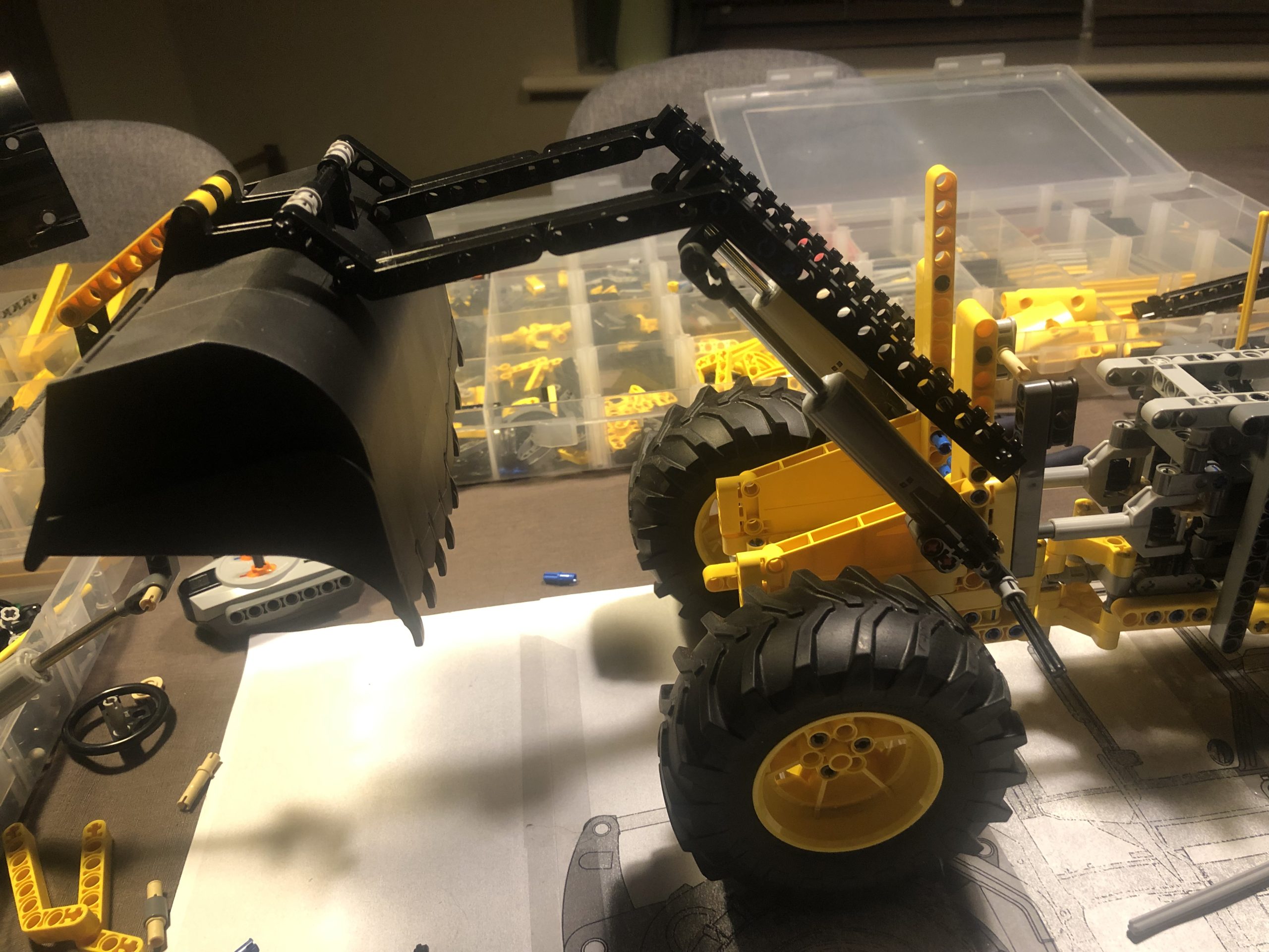I returned to the project a few months later. My first step was to rebuild the Lego 42030 Volvo wheel loader and have a look at the z-linkage. To my surprise, it was good, but not perfect, and certainly didn’t seem to work in the same way as the real thing. Armed with new ideas of how to approach the loader, I spent a few evenings experimenting with a very simple design. At this stage there was a lot of experimentation with beams of different lengths, but eventually I had a design that seemed to work well. The arms were a little longer than I’d like, but the functionality seemed right. Even so, I was feeling disheartened by the project, so once again I decided to put it aside for a while.
