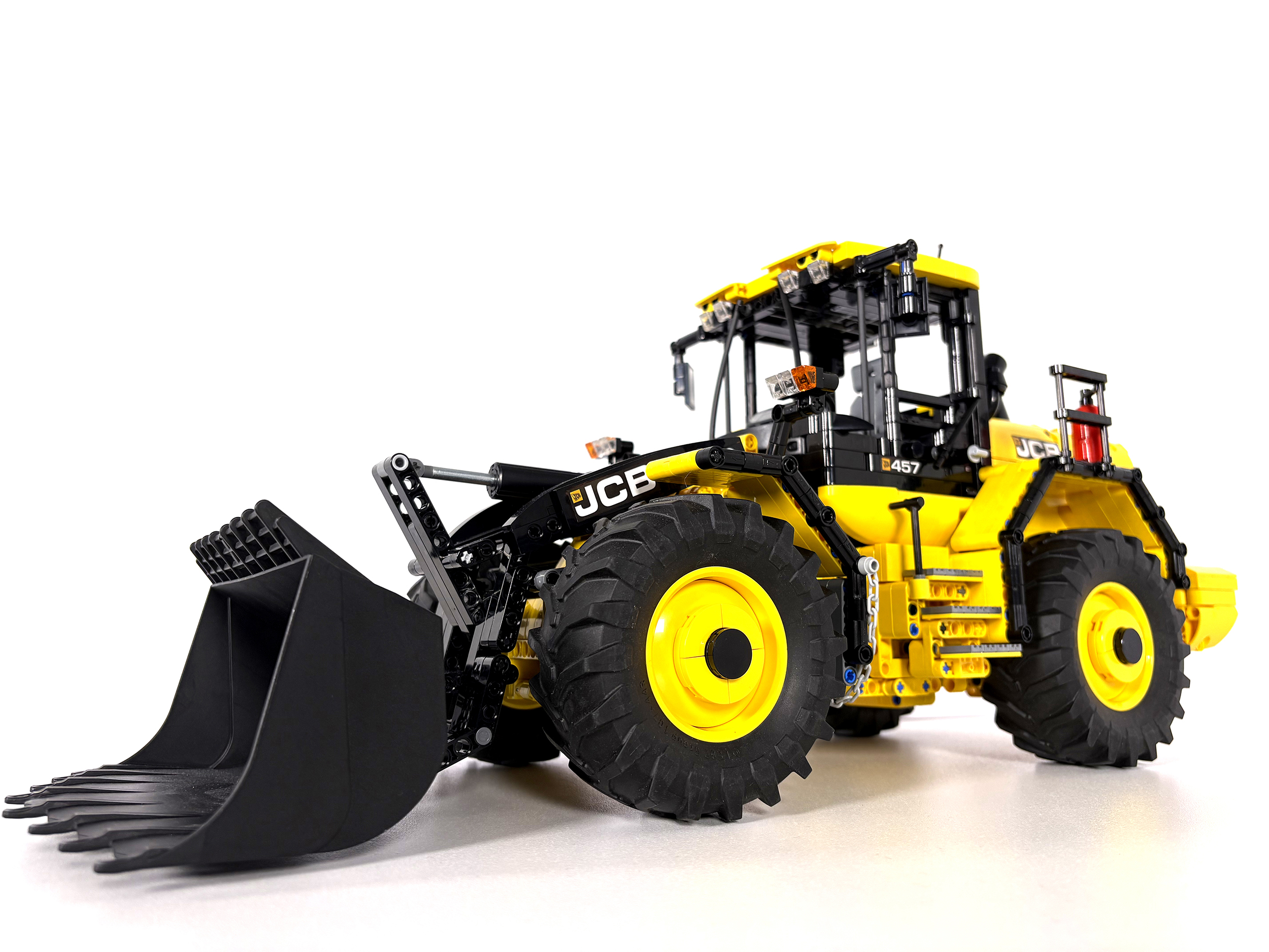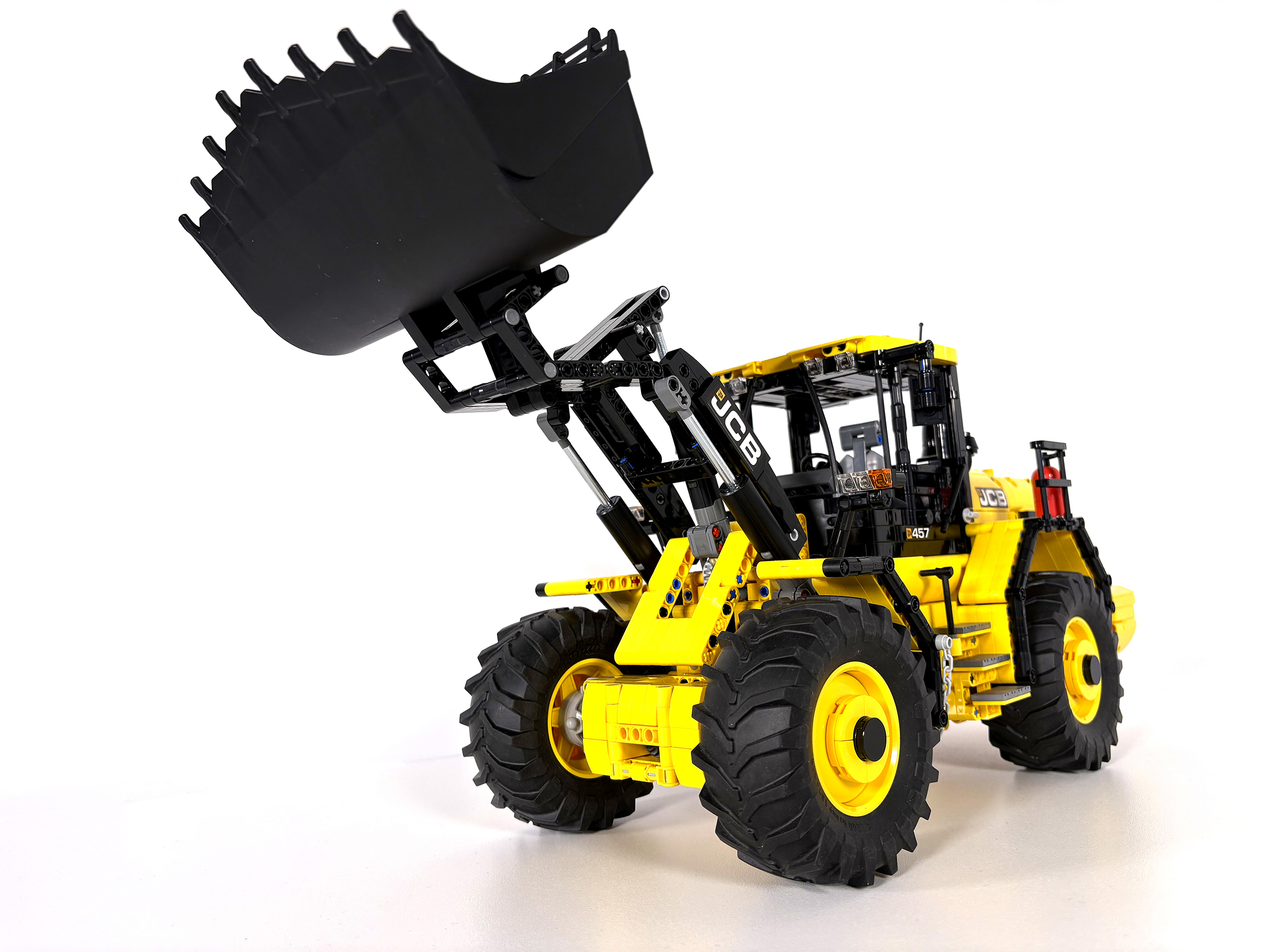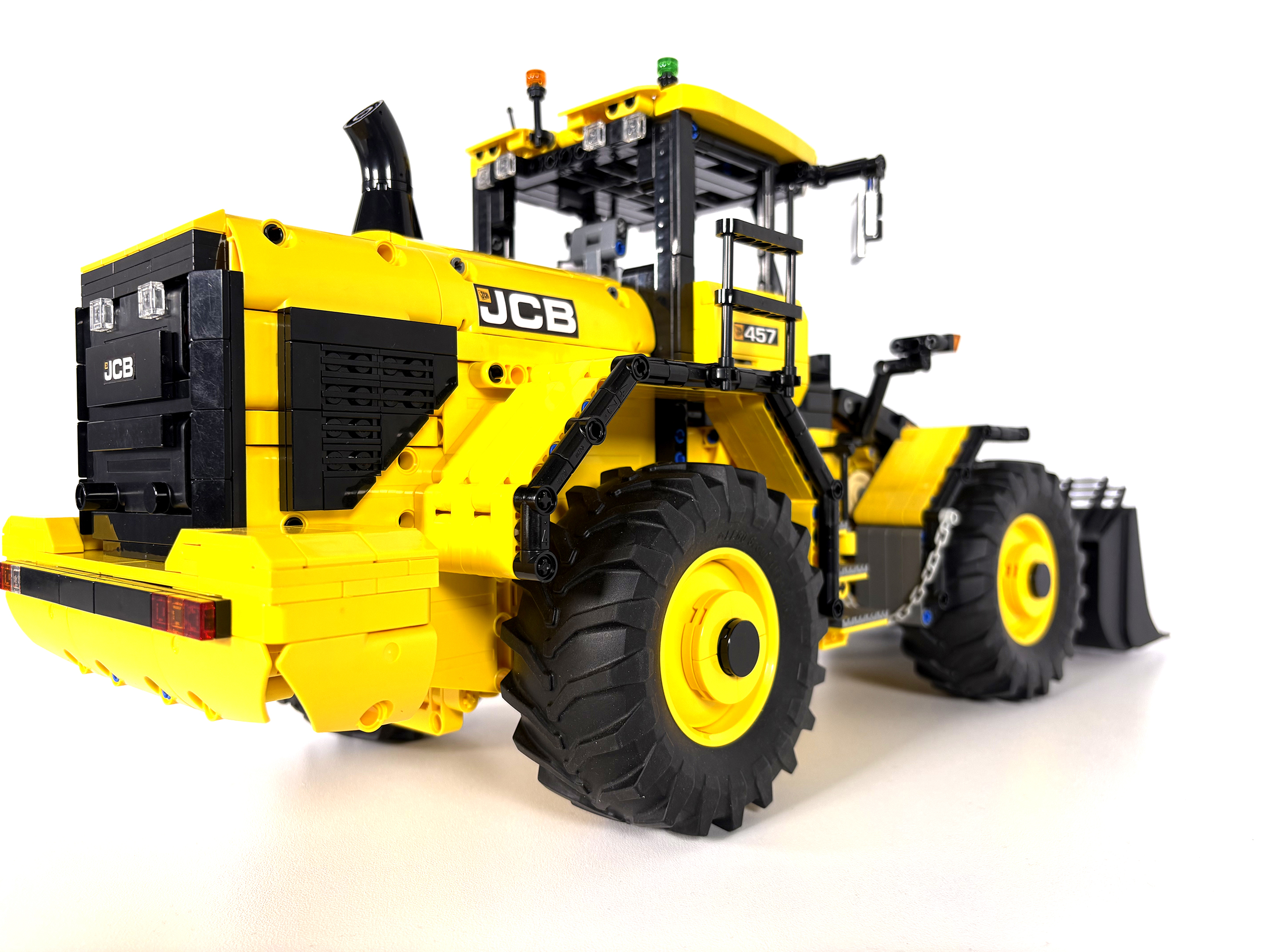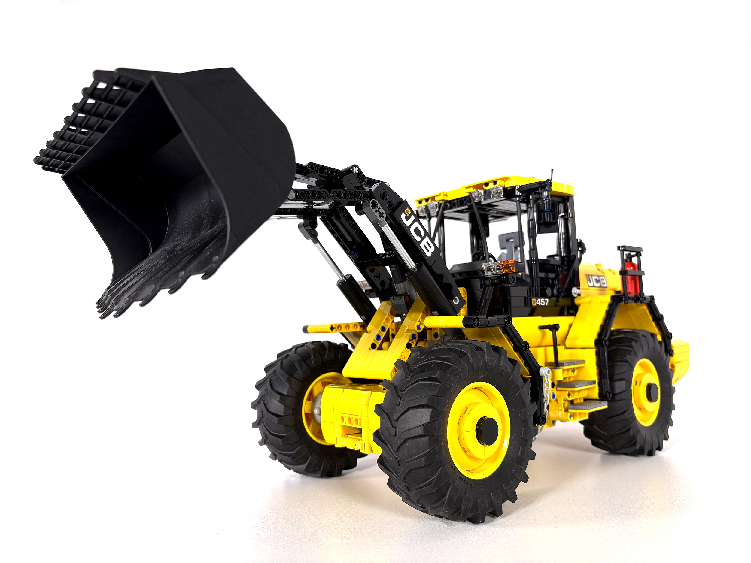 This MOC is my version of the JCB 457 Wheel Loader. It has four motorised functions, all of which are controlled by the BuWizz 2.0 and accompanying app. The model has 2309 pieces and is a complex, but enjoyable build. PDF instructions are available to purchase here on the site, and via ReBrickable. A sticker sheet for this set is also available from the shop.