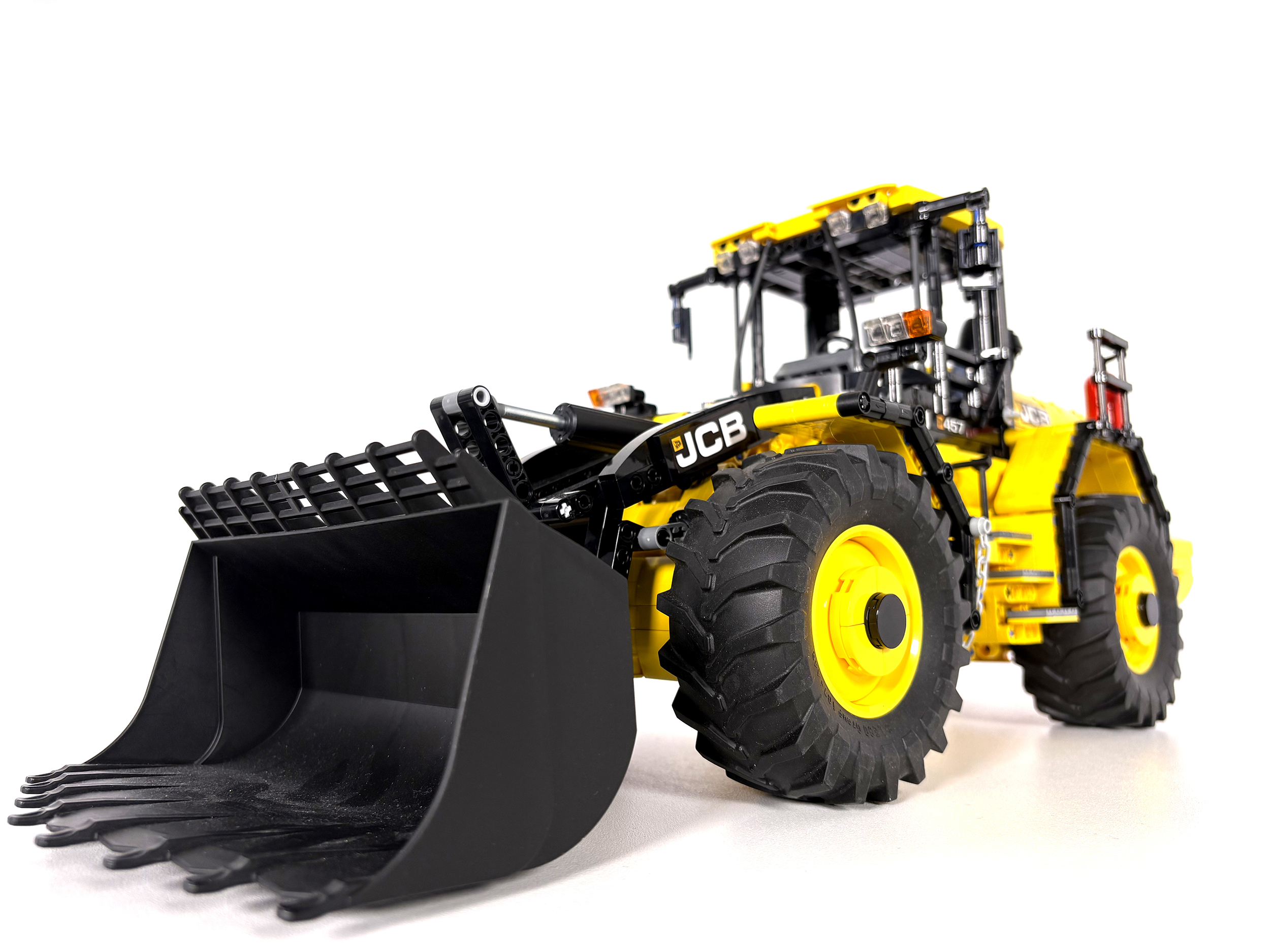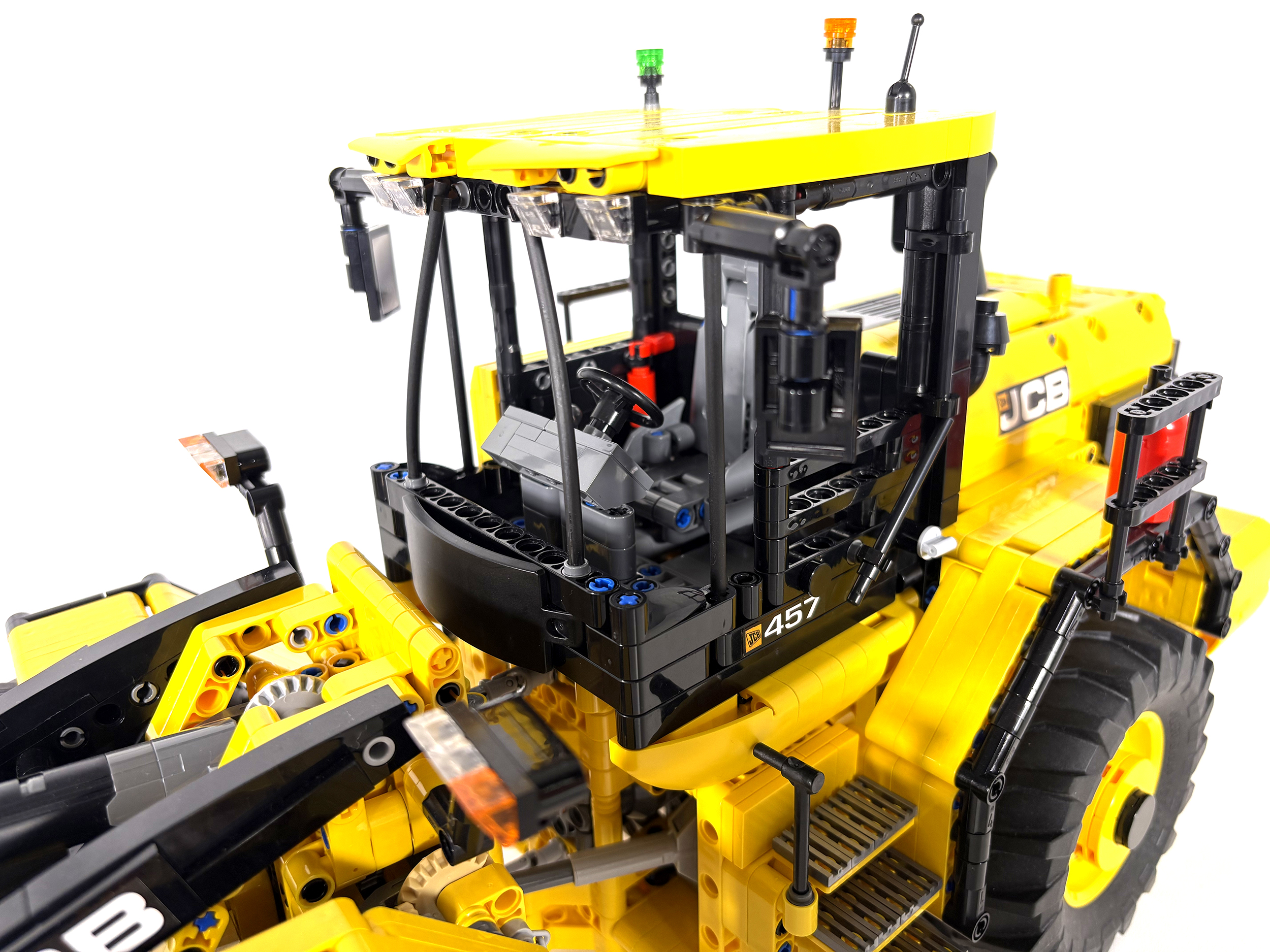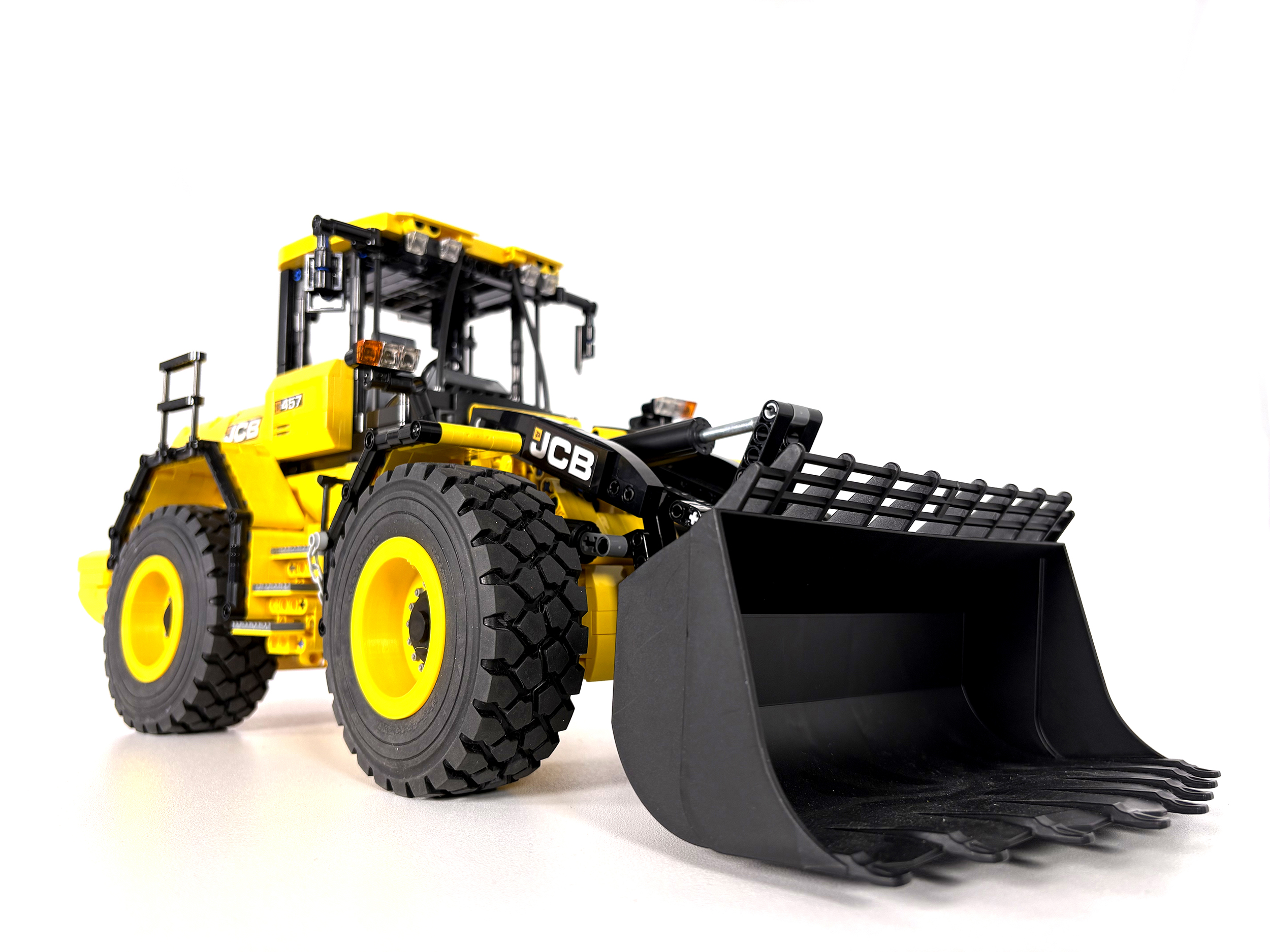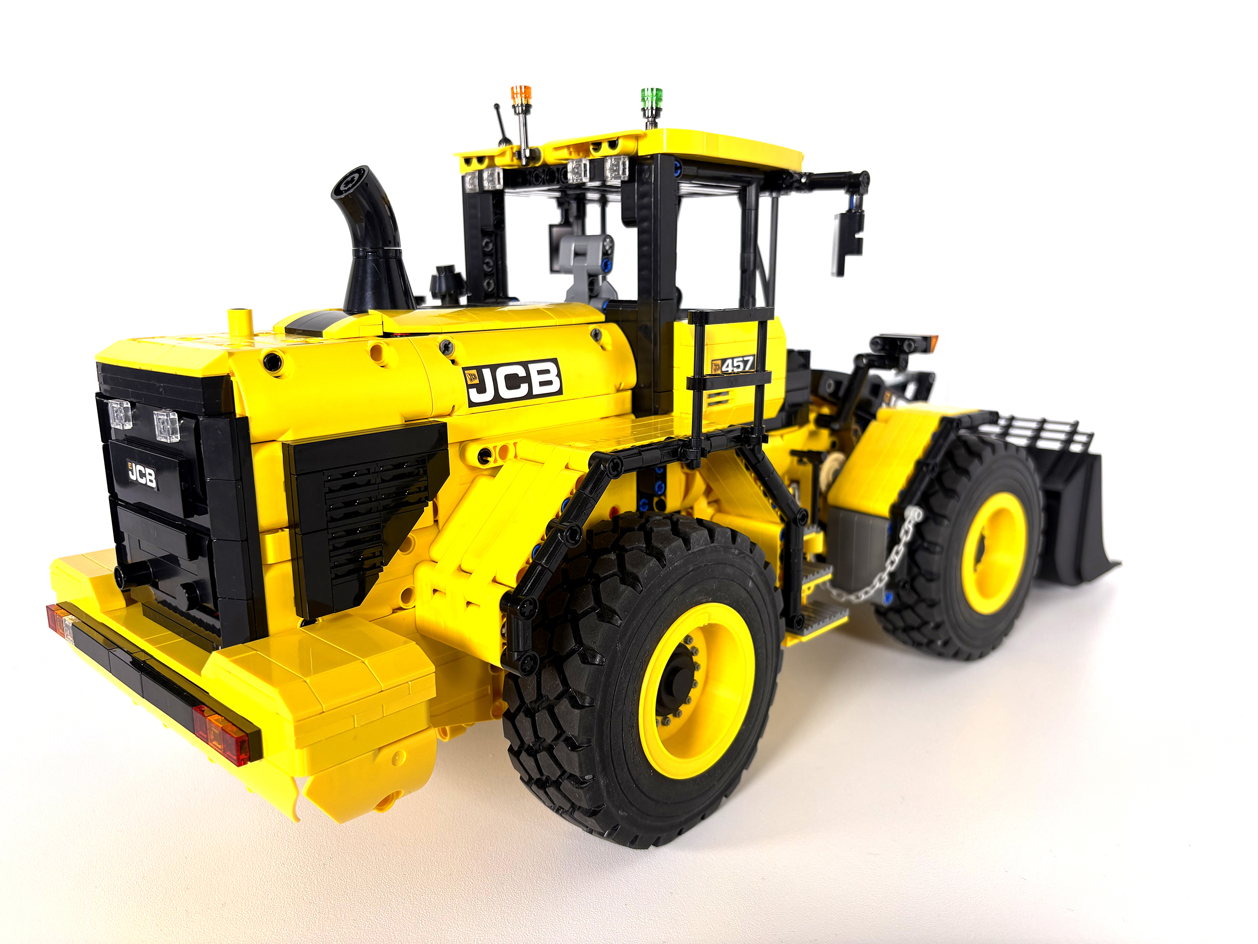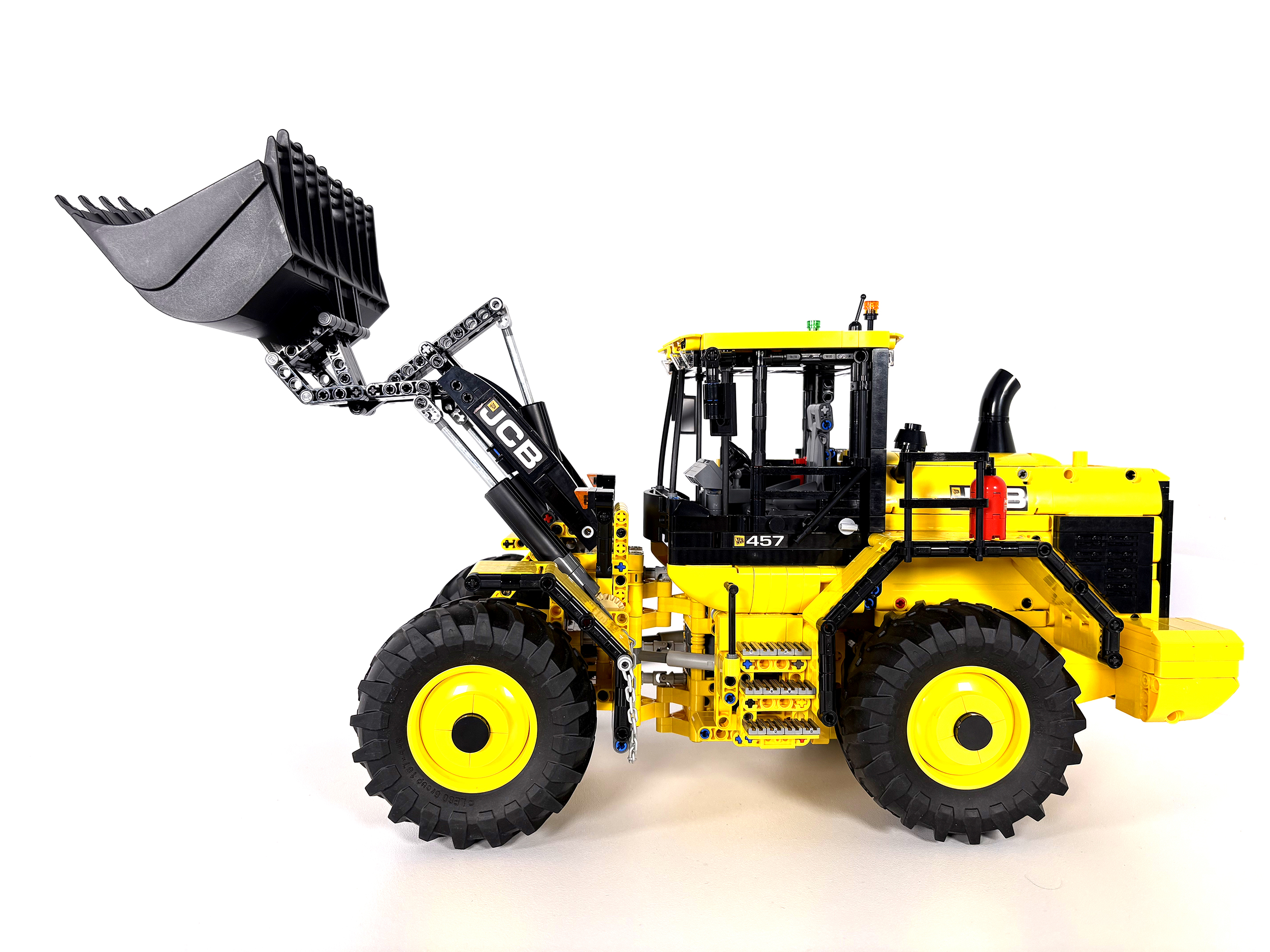 This MOC is my version of the JCB 457 Wheel Loader. It has four motorised functions, all of which are controlled by the BuWizz 2.0 and accompanying app. The model has 2309 pieces and is a complex, but enjoyable build. PDF instructions are available to purchase here on the site, and via ReBrickable. A sticker sheet for this set is also available from the shop.