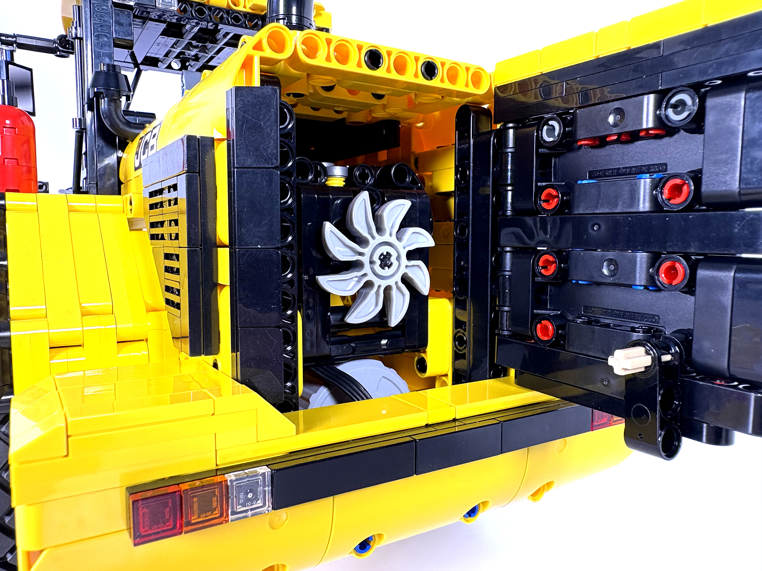 This model is my third MOC and was started on 9th March 2022. Having already built a backhoe and a telehandler, I decided that the next machine to tackle would be a wheel loader. This would present some new challenges that I hadn’t encountered in my previous models: pendular suspension, functional Z-linkage, and steering via linear actuators. I wanted to pack this model with other features too, and was determined to include a functioning engine, as well as opening doors and engine compartments.